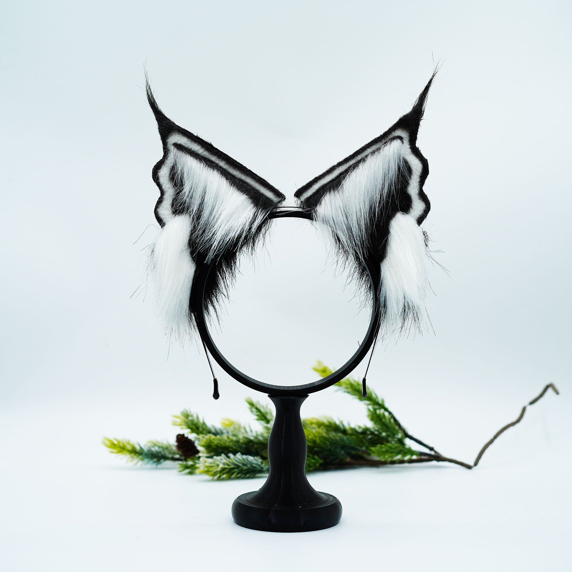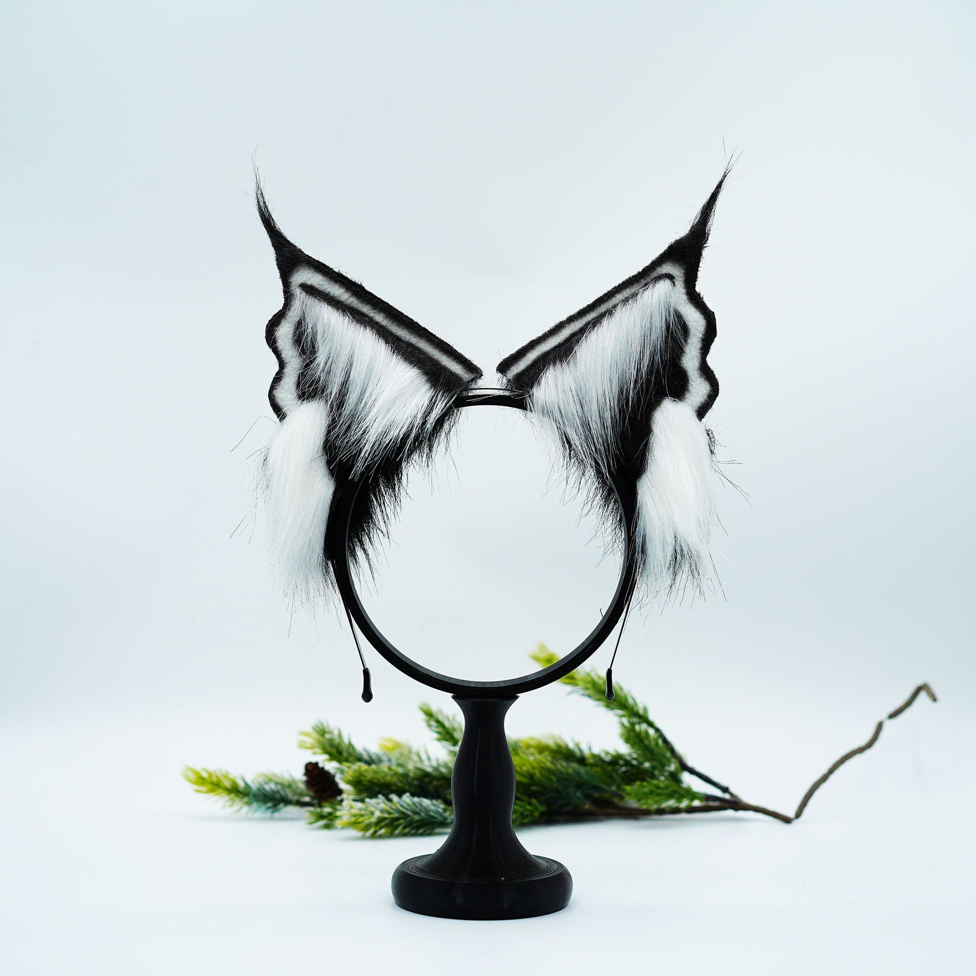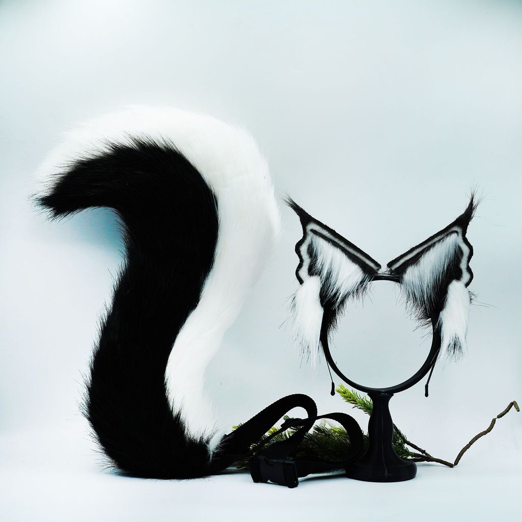 Handmade black Faux Fur Cat Ears,Black and white ears and tail ,Cosplay Anime Cosplay, Ears,Fluffy Fox ,Ears Headband ,gift for kid,