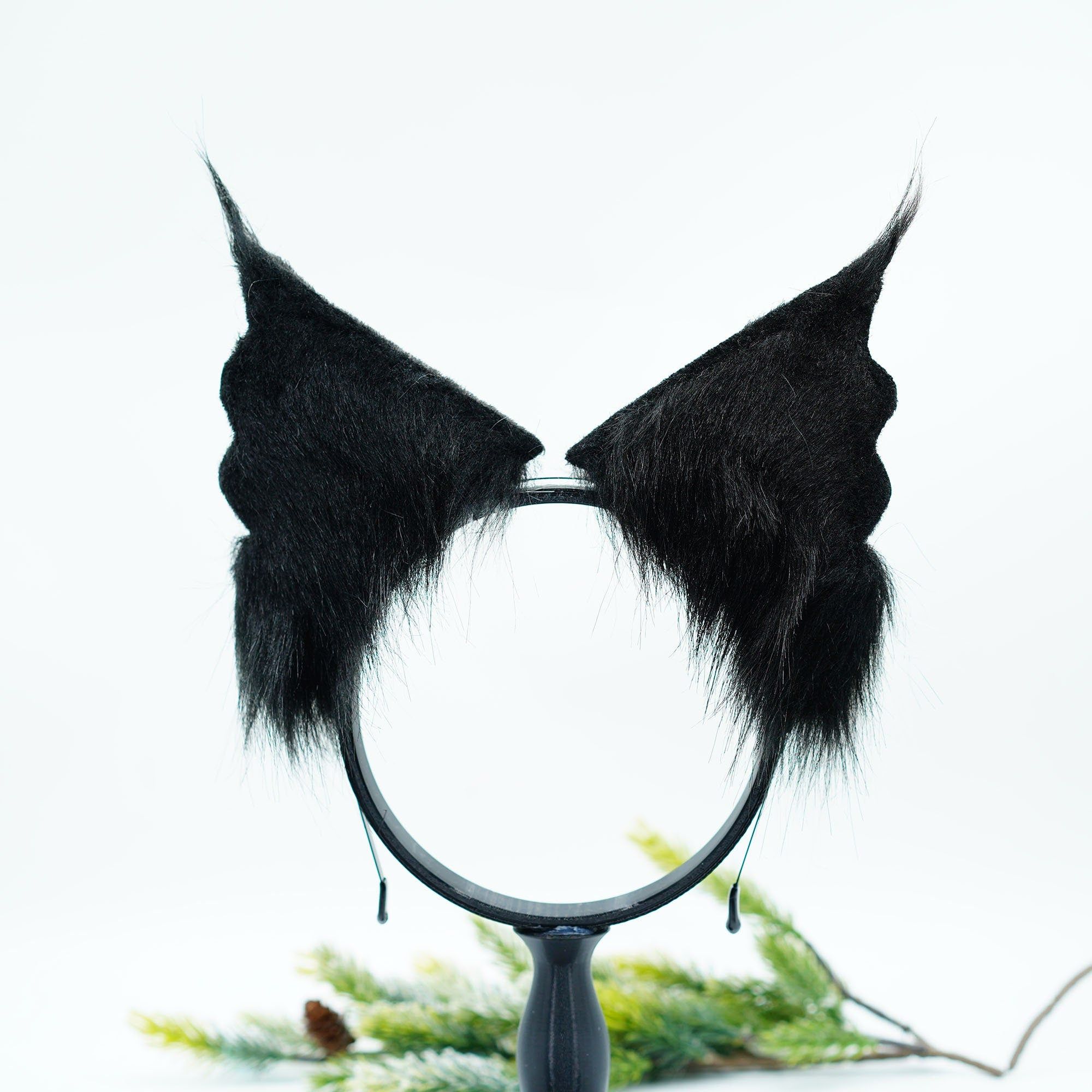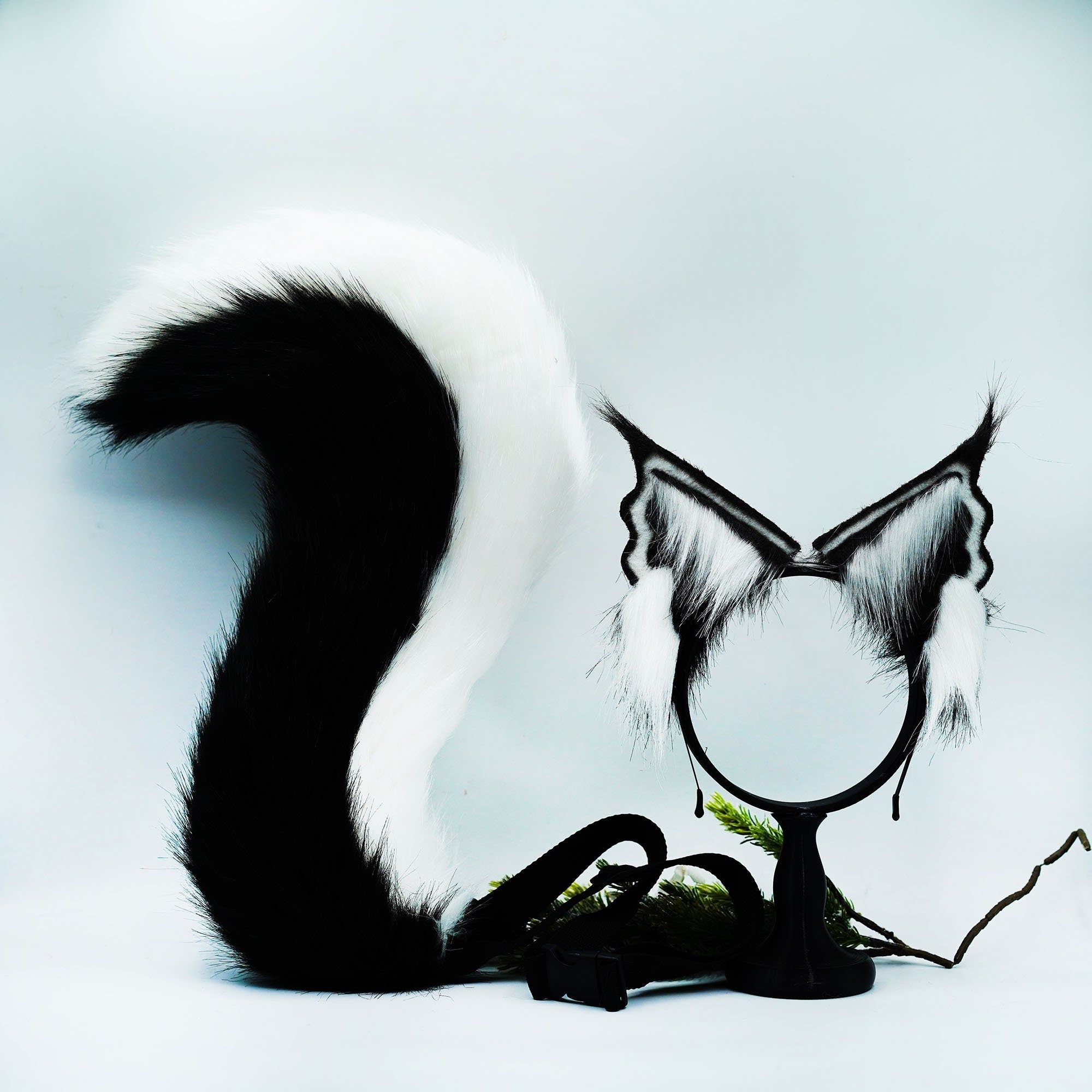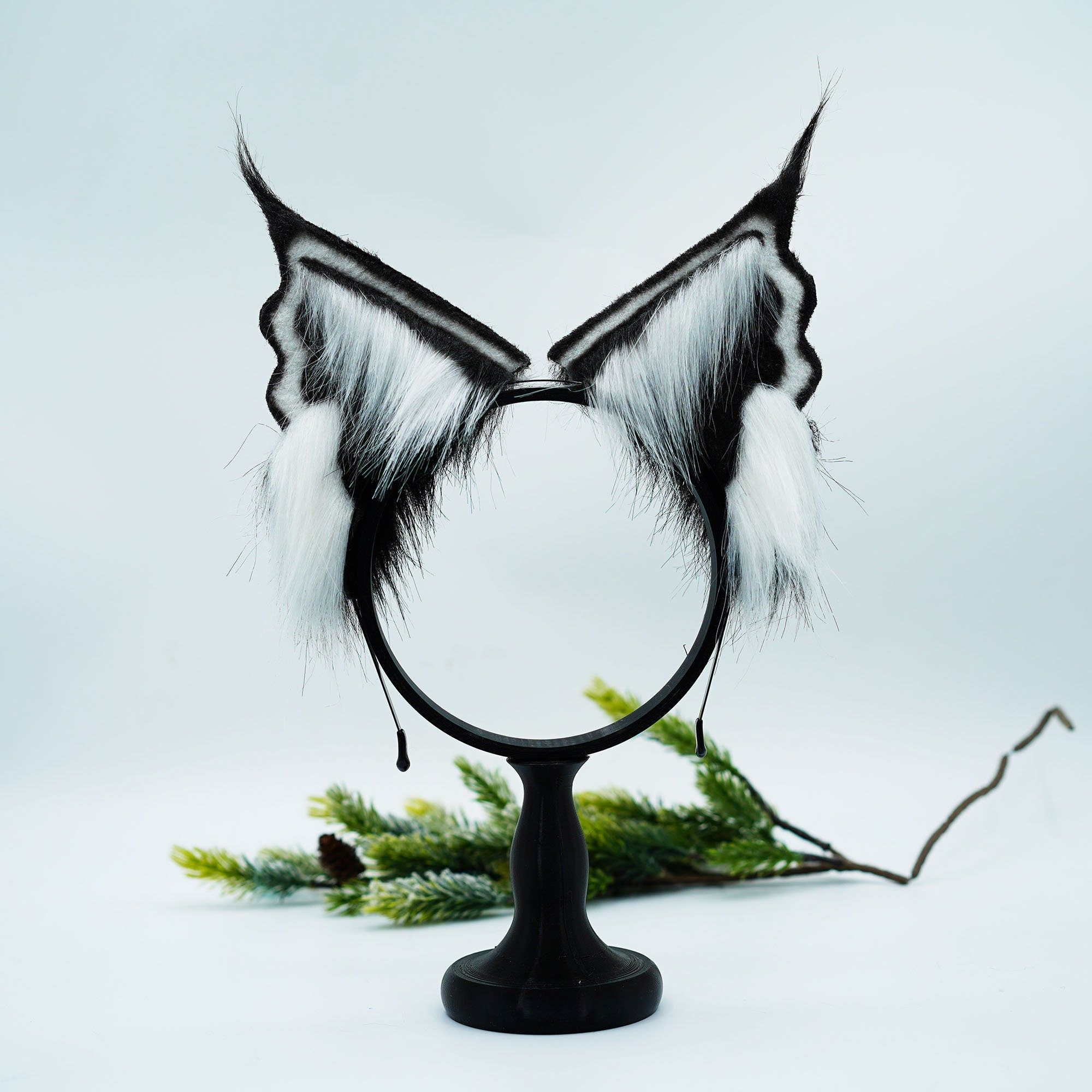 Handmade black Faux Fur Cat Ears,Black and white ears and tail ,Cosplay Anime Cosplay, Ears,Fluffy Fox ,Ears Headband ,gift for kid,